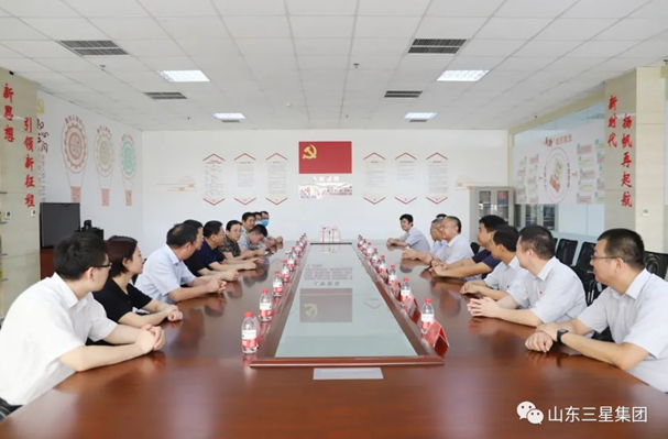 7月1日,省民营企业高质量发展服务队全体队员来山东s36沙龙会集团玉米产业党建示范点参观并开展赠书送学活动,邹平市委组织部副部长王凯,韩店镇党委副书记、镇长邢锦凯,山东s36沙龙会集团党总支书记、董事长王明峰、副总经理孙喜、任在顺陪同活动。