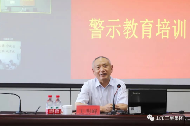 为进一步加强全员法制教育,增强全员法律素质,促进企业健康发展, 近日,山东s36沙龙会集团组织开展警示教育培训,集团党总支书记、老董事长王明峰,副总经理张新颖及集团各单位审计、采购、业务、物流、物管、储运等干部员工参加培训。