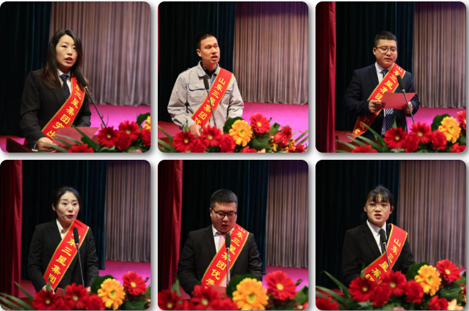 围绕2024年奋斗目标,聚焦创新创效,来自突出贡献单位及生产管理、市场销售等一线岗位的6位优秀代表分别作表态发言,表达了他们立足岗位、奋勇争先的坚定信念以及为企业稳健高质量发展而创新实干的青春理想,充分展现了广大干部员工忠诚担当的责任意识和奋发向上的豪迈情怀。