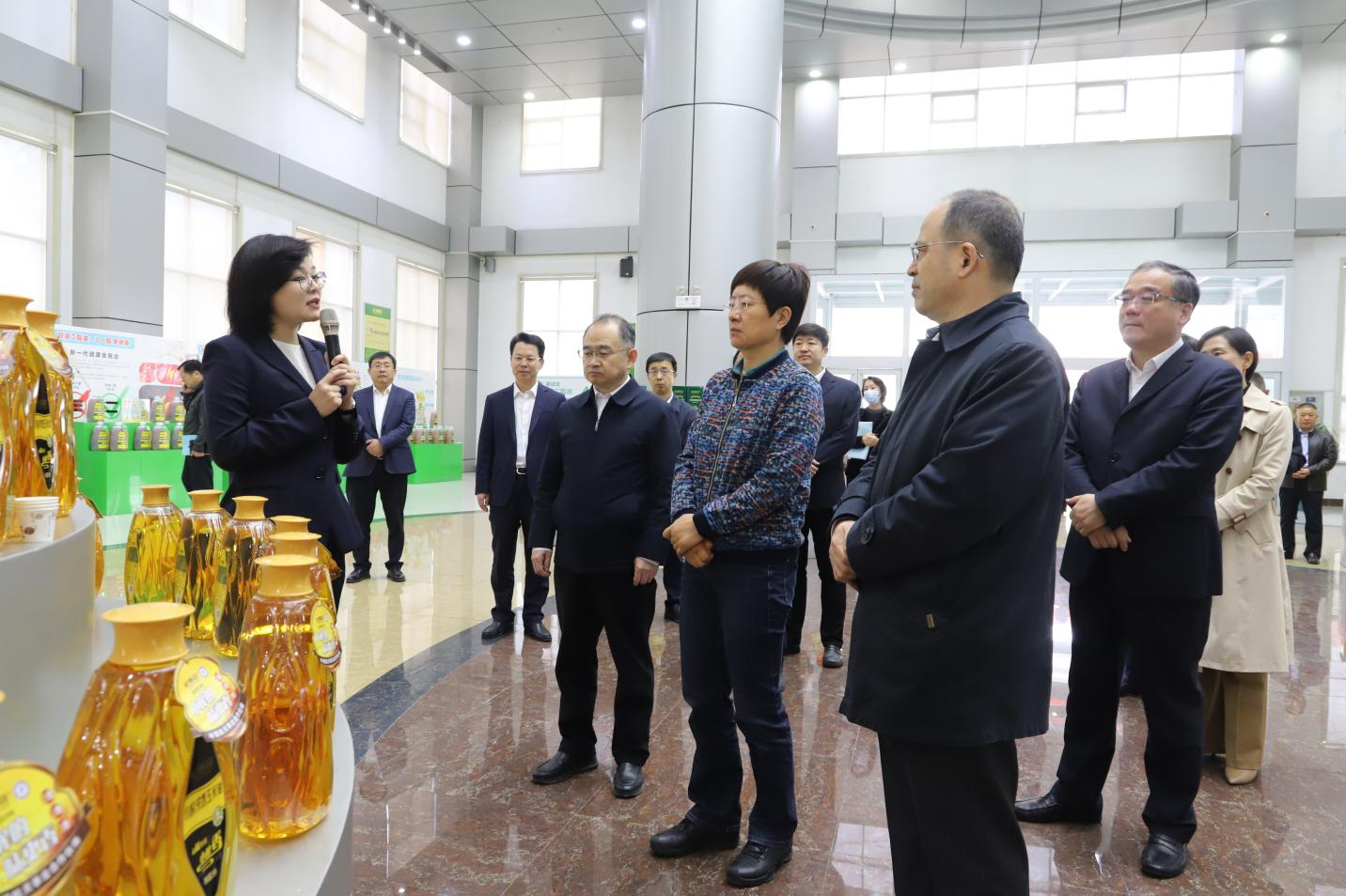 在山东s36沙龙会集团董事长、总裁王亚群的陪同下,王随莲查看了长寿花食品绿色生产基地产品展厅和生产车间,详细了解企业产业布局、生产经营、技术革新、产品创新研发、品牌市场推广等情况。