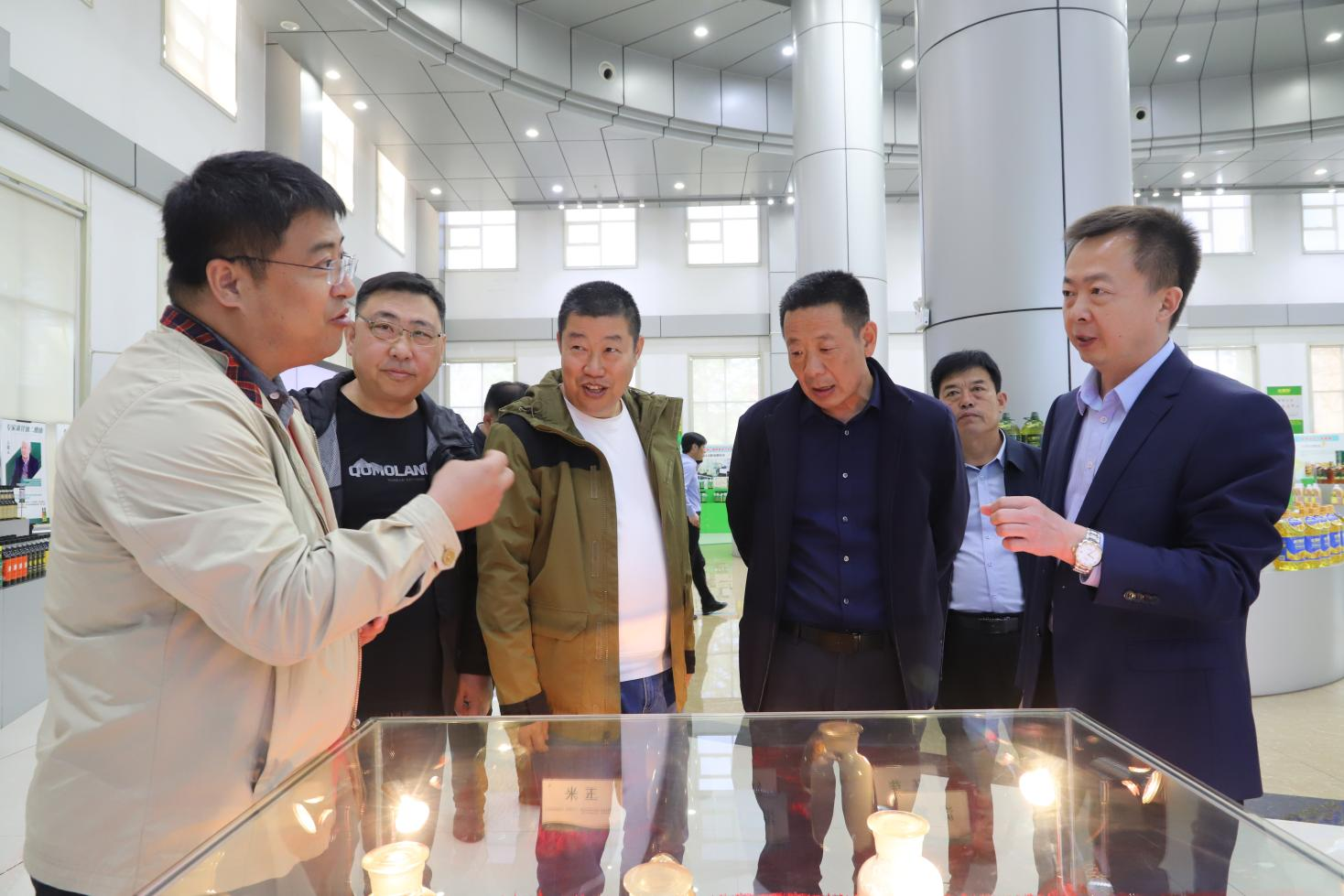在长寿花食品绿色生产基地,考察领导详细了解企业生产经营、农产品加工水平及品牌培育、市场开发等情况,并就粮油精深加工、产业链延展等内容与企业领导进行了深入交流探讨。