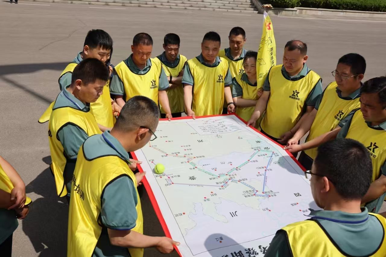 队员们通过协作拉动地图,让小球沿着“长征路线”滚动,在感受长征精神的同时,进一步强化了团队的沟通与配合,增强了团队的凝聚力与使命感。